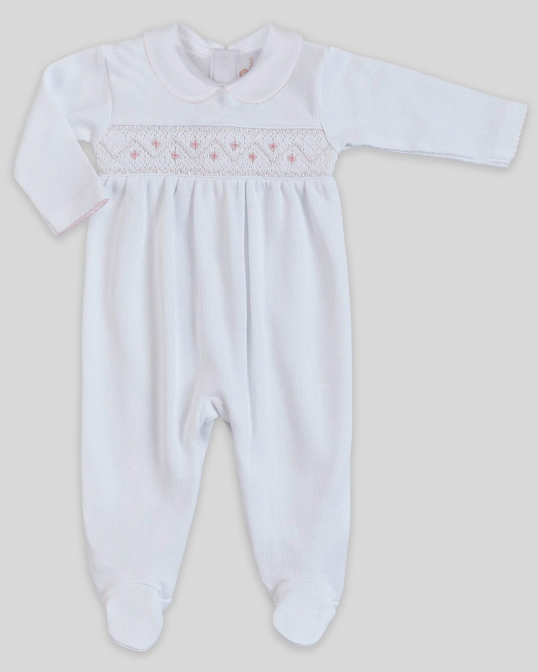 Enterizo bordado punto smock Ginette - Blanco